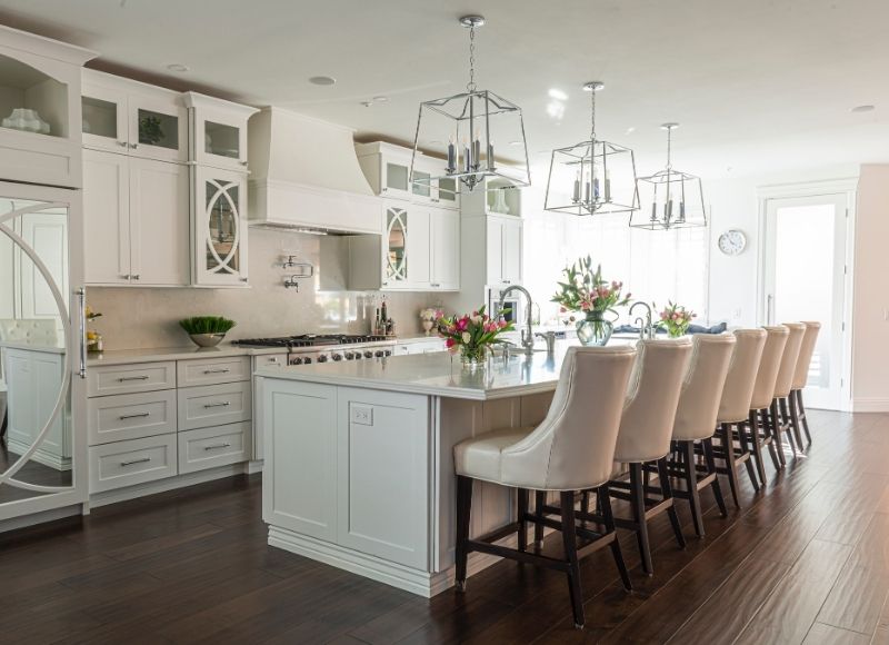 Open-concept layouts with islands or peninsulas.